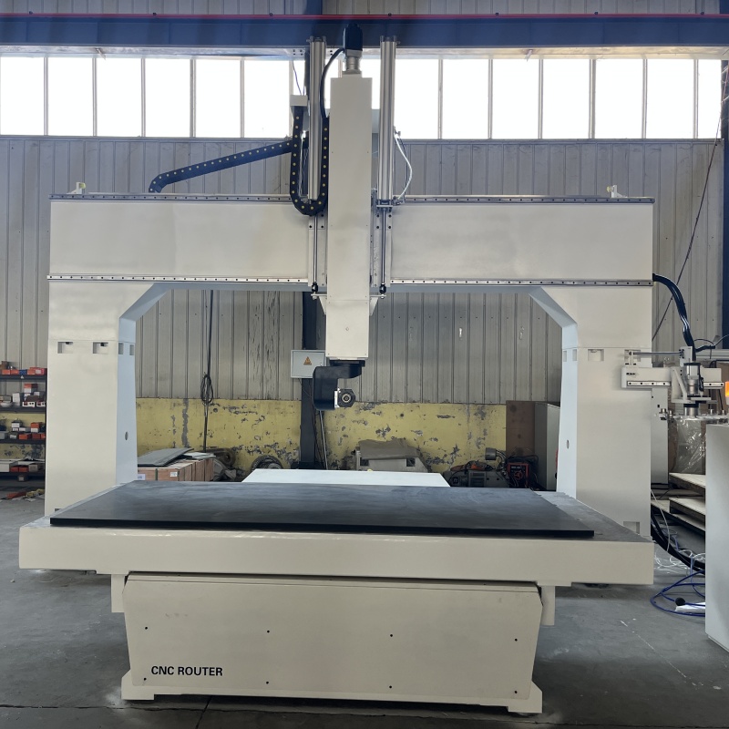 The five-axis woodworking machining center is an intelligent device that integrates digitalization and high precision. Through the three-axis linear motion of X, Y, and Z and the two-axis rotation of A and C to form a five-axis linkage system, it can complete complex processes such as curved surface carving, three-dimensional hollowing, and mortise and tenon structure cutting on solid wood, plates and other materials. Its CNC system supports the import of three-dimensional models and can accurately meet the needs of furniture carving, handicraft curved surface modeling, and special-shaped component processing. It can not only handle arc surfaces and spiral structures that are difficult to complete with traditional woodworking machinery, but also improve processing efficiency through multi-axis collaboration, adapt to customized furniture production, solid wood artwork production and other scenarios, and provide flexible and high-precision processing solutions for the woodworking industry.